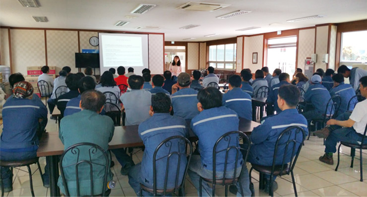 현장 생산공정에 투입 예정인 경력 및 신규 입사자를 대상으로, 작업에 투입되기 전 안전수칙 및 안전사고 예방교육 실시